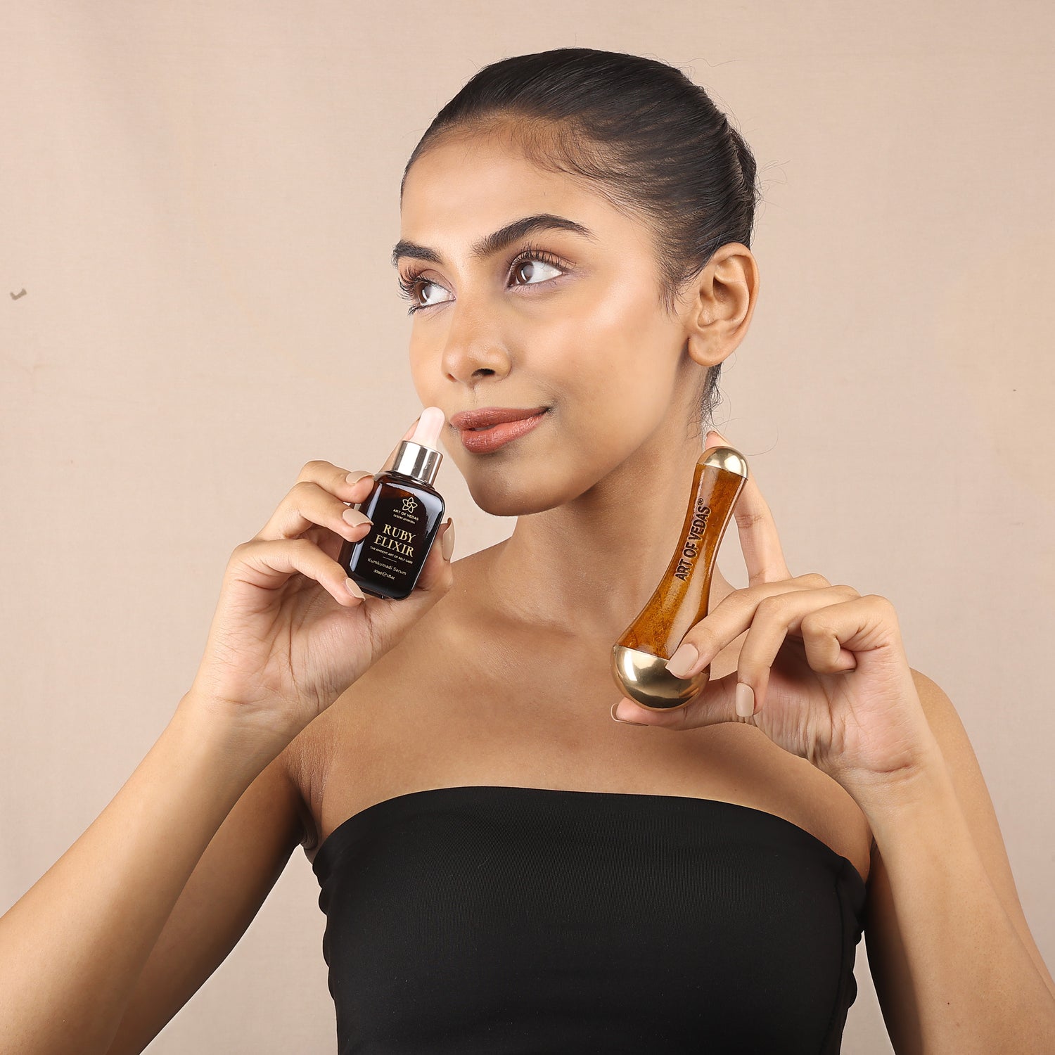 Erleben Sie die zeitlose Ayurvedic-Praxis der selbstgesichtlichen Abhyanga mit dem Kumkumadi Abhyanga Ritual Kit, einem luxuriösen Duo für strahlende, ausgeglichene Haut. Dieses Set enthält das Ruby Elixir Kumkumadi Serum, eine kraftvolle Mischung aus Safran und Ayurvedic-Kräutern, die für ihre Fähigkeit bekannt sind, die Haut zum Strahlen zu bringen, sowie den Double-Sided Kansa Wand, der entwickelt wurde, um die Durchblutung zu fördern und das energetische Gleichgewicht wiederherzustellen.
